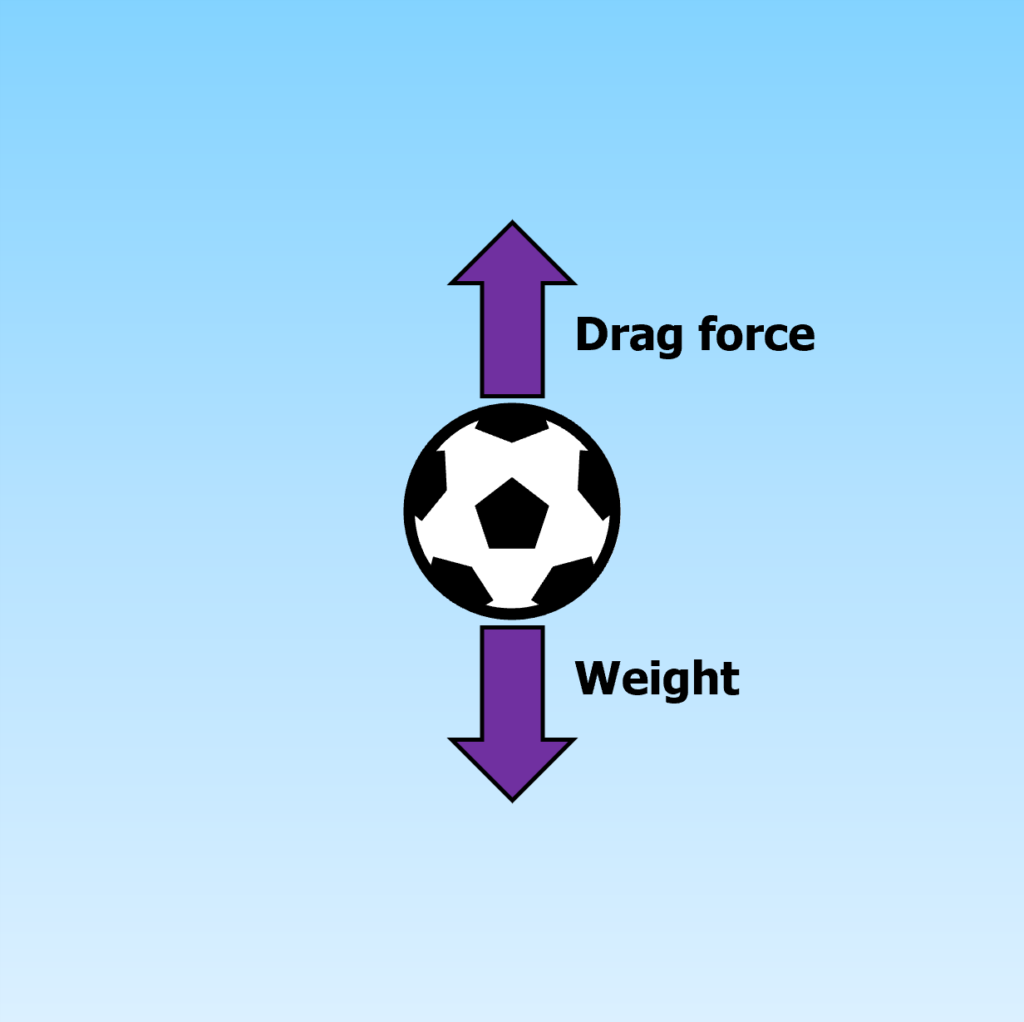 When an object is falling through a fluid (i.e air) vertically, there are two forces acting on the object: the object’s weight and drag.