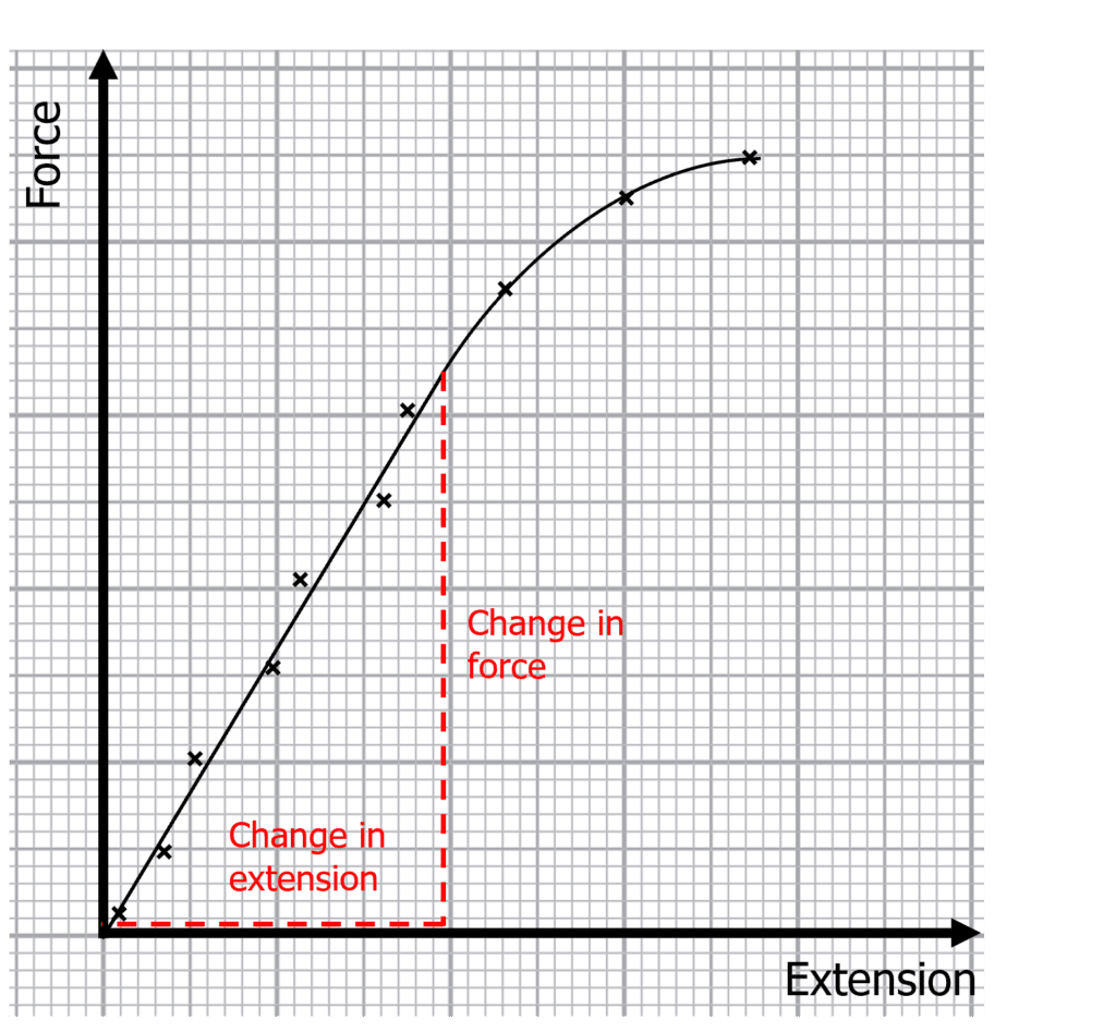 - Plot a graph of force against extension. It should look something like the force-extension graph below.