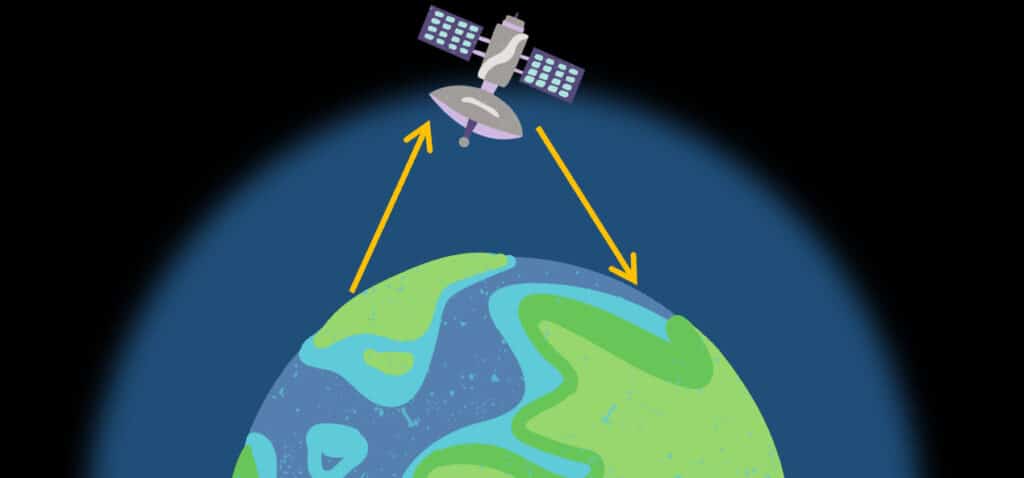 Microwaves are used to send signals to satellites which can send the signals on to distant locations. The satellites orbit the Earth, thousands of kilometres above the surface. The returned signal is received by a satellite dish.