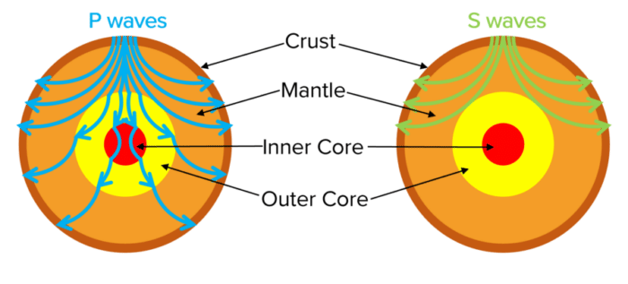 Question 3: Explain how P waves and S waves can be used as evidence for the internal structure of the Earth.