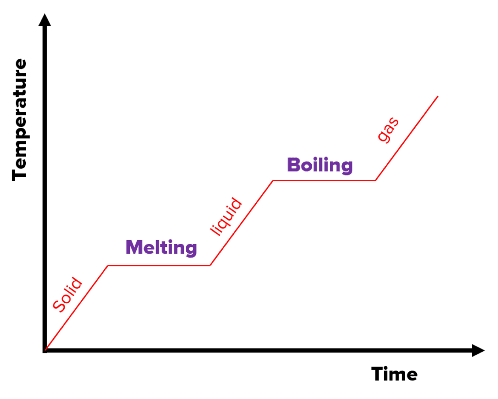 The graph on the right is a heating graph. As the substance is heated over time, the temperature increases. However, notice the flat sections of the graph. This is where the substance is changing state.