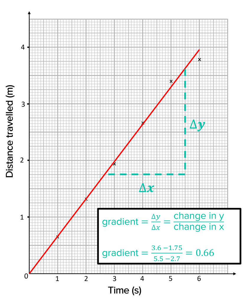 We can use graphs to extract information from our results. One value we can calculate from our graph is the gradient. The gradient will give us the rate at which the dependent variable changes with the independent variable.