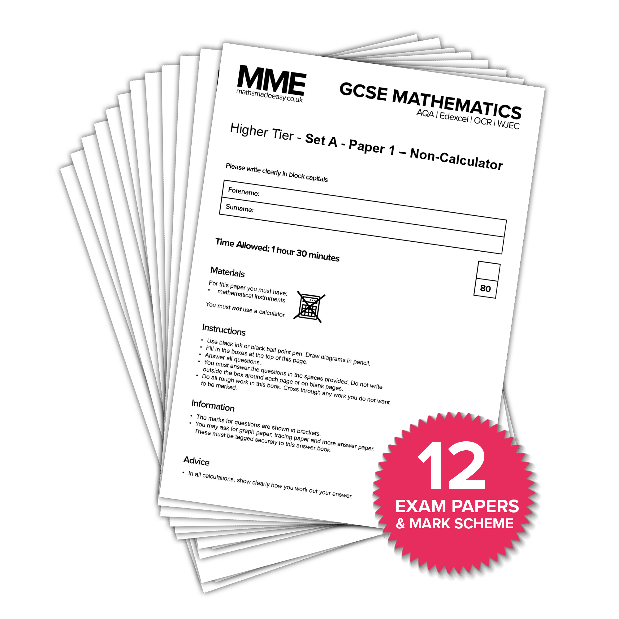 - Practice papers – 12 papers & mark schemes