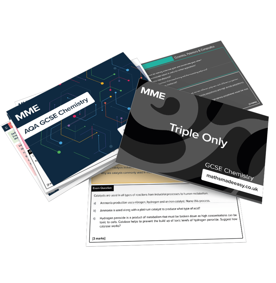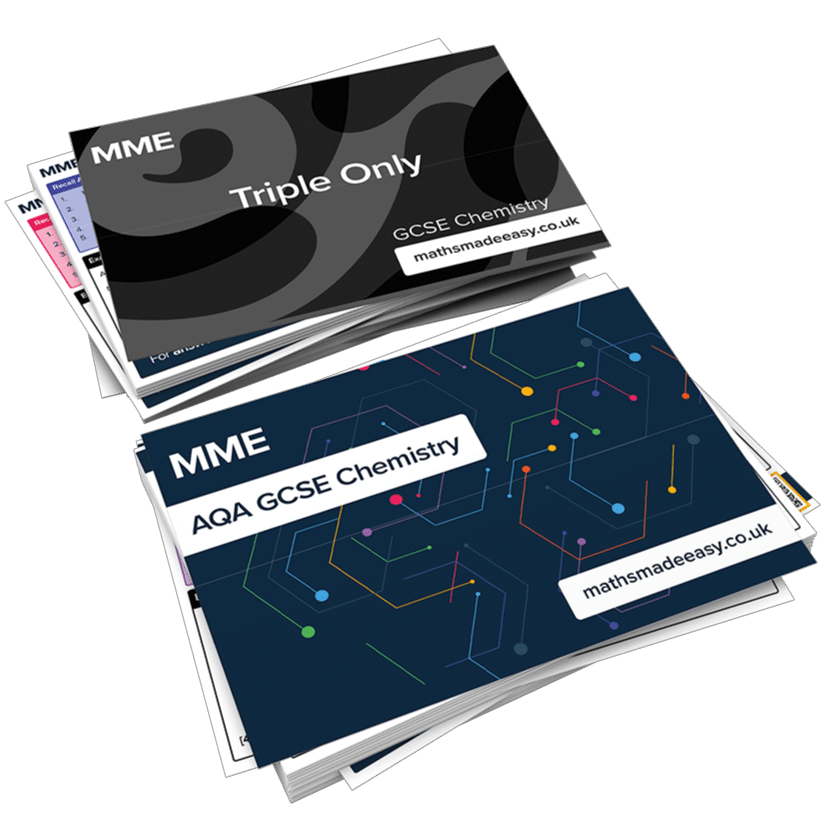 GCSE Chemistry revision cards are the perfect revision tool to help You improve your grade. The MME Chemistry cards cover all the major topics areas within the AQA GCSE Chemistry specification. The profit from every pack is reinvested into making free content on MME, which benefits millions of learners across the country.