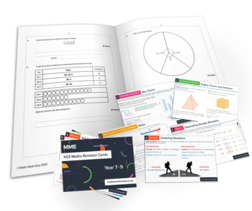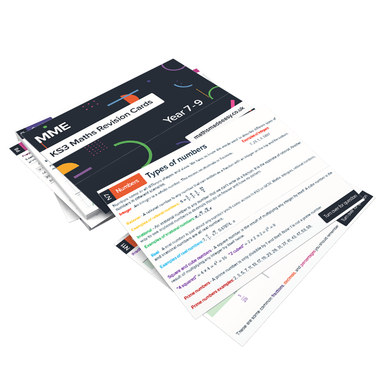 All of the topics in the KS3 maths curriculum are covered the KS3 Maths Revision Cards pack.