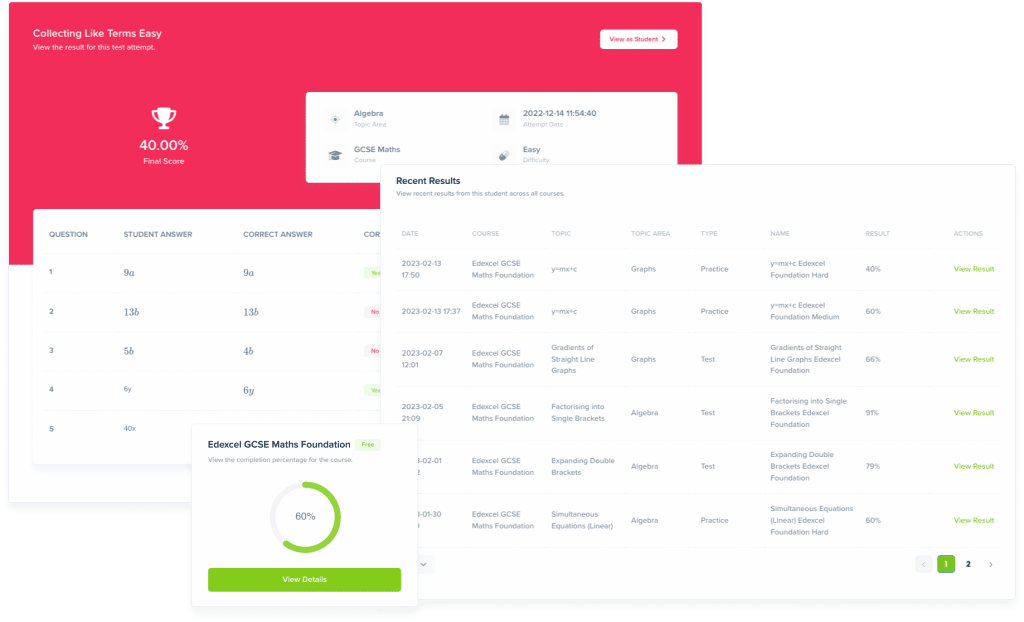 Our platform is designed to enable tutors to track the progress of their pupils as they work through GCSE maths, English or science courses.