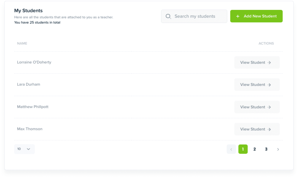View a list of all students attached to your account